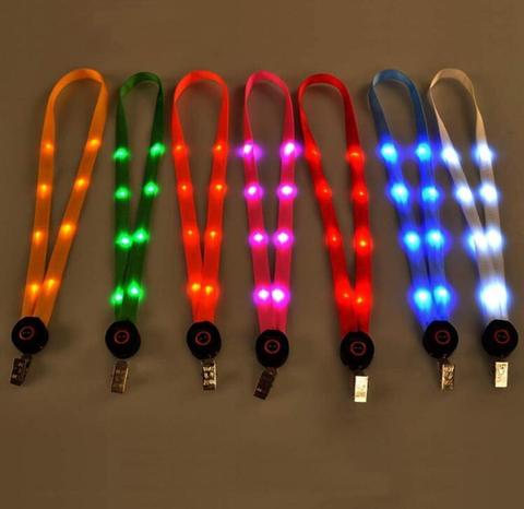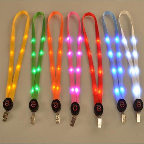 7 Color LED Nylon Neck Lanyard Strap Flashing Led Necklace ID Card Pendant Hanging Cord Rope for Men Women