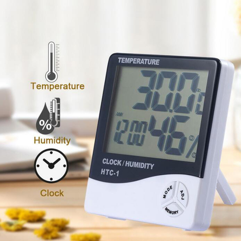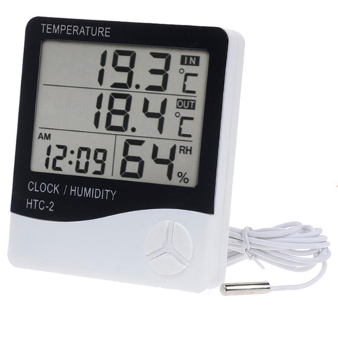 LCD Digital Temperature Humidity Meter Home Indoor Outdoor Hygrometer Thermometer Weather Station with Clock HTC-1