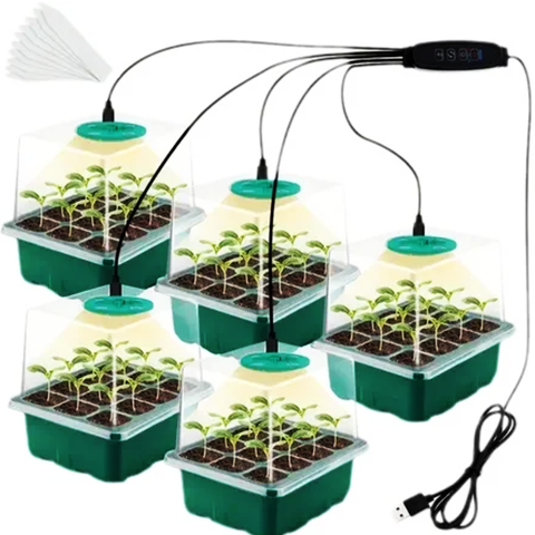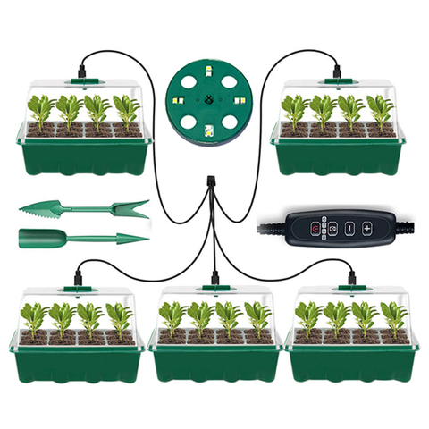 Mini Greenhouse Germination Kit Waterpoof Hydroponic High Humidity Dome 40 Cells Seedling Starter Tray with LED Grow Light